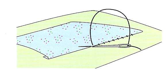 Next sew the appliqué to the fabric. Push needle through seam-allowance fold from the back and then pull it completely through the fold. The stitches must be very close so they are short and don’t show.