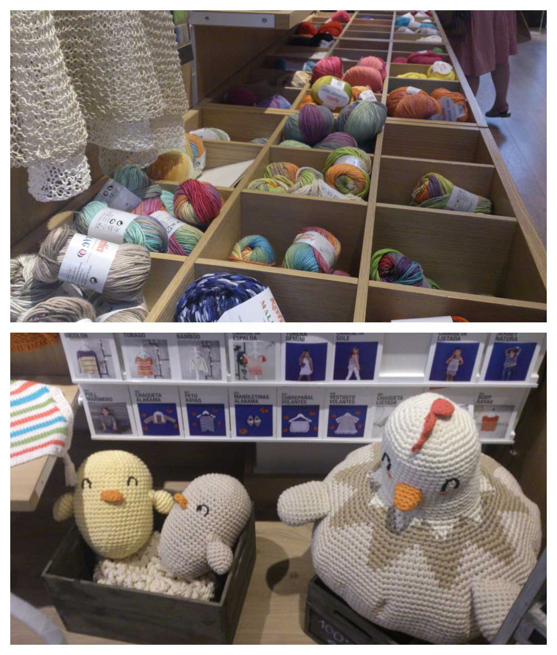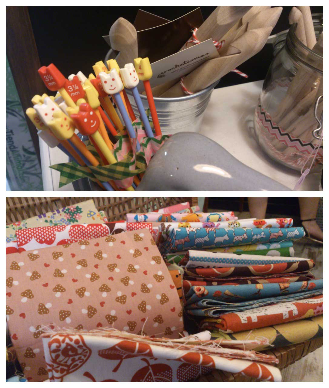 Ya por la tarde quedamos con dos guías de lujo: Cristina de Oh!villo y Mireia de Mr and Miss Colors, que nos hicieron una ruta por el barrio de Gracia siguiendo la que ellas habían hecho anteriormente con Petit Pot. Pasamos por Olokuti (artesanía y productos de comercio justo), IFIL (una maravillosa tienda de lanas Katia), Oslo (tienda-taller de tres maravillosas artesanas), la-a (productos vintage y de decoración), Nido de Abeja (la famosa y acogedora tienda de labores) y Philo (boutique de ropa de autor).