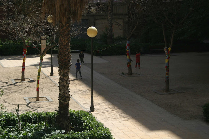 El sábado realizamos la primera urban knitting organizada por The Crafty Room. Hemos estado dos meses tejiendo y preparándola y lo hemos pasado muy bien, pero reunirnos todos para montarla fue lo mejor.