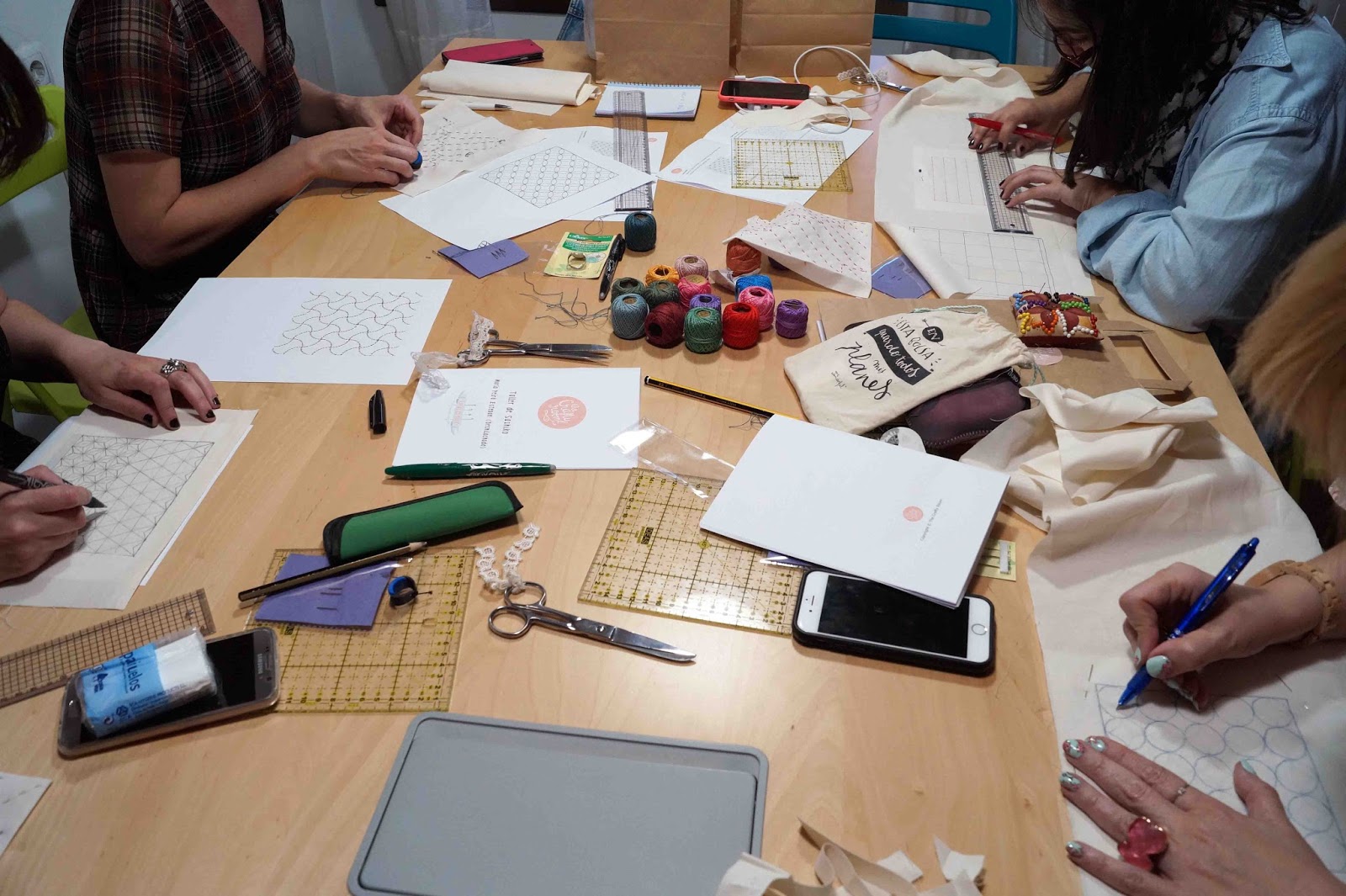 Para mi es un placer practicar el Sashiko porque me gusta mucho el resultado y es muy relajante, así que estaba deseando compartirlo con mis alumnas. Y he tenido la suerte de hacerlo con cuatro de ellas a las que aprecio mucho, así que lo pasé genial en todos los sentidos. ¡Gracias, chicas, por una tarde estupenda!