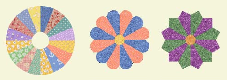 Now, to be practical, it is a block formed by petal-shaped pieces placed around a circle, resembling a flower. The most usual petals used in Dresden are rounded (ice cream cone), pointed or forming a perfect circle, though there are several variations.