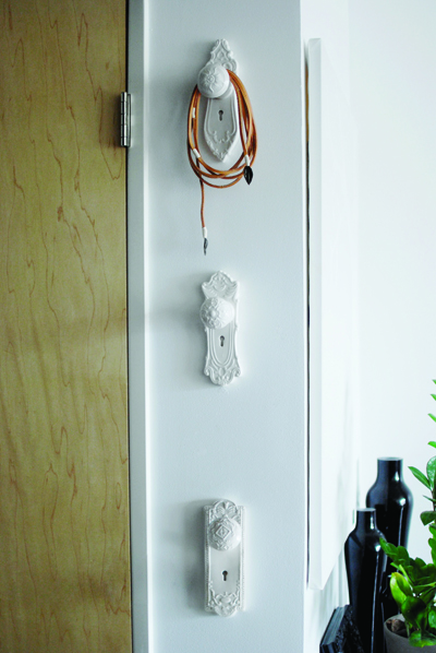 Great decoration idea: old doorknobs used as hangers. I’ve seen it at Imm-Living.