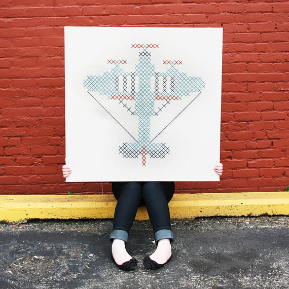 Great scale cross stitch result very modern and casual. Jessica Decker, art director and graphical designer, is dedicated also to embroider these funny works.