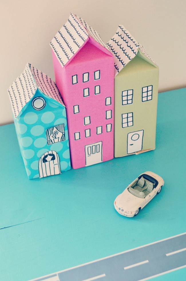 What do you think about these little houses? They are made recycling cartons of milk. They are by MormorsGlamour.