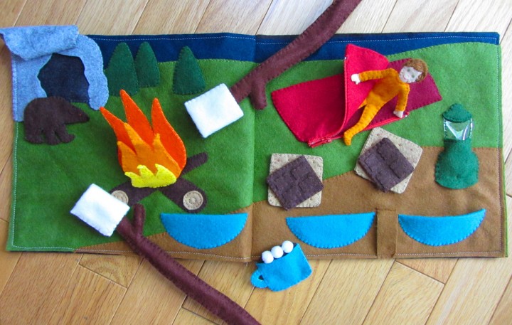 Stephanie, from Imagine your Life, has made with felt this enjoyable camping book-game for her son. No detail is missing! You may see how she made it and download the pattern.