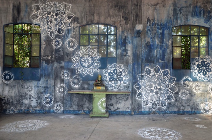 The artist NeSpoon beautifies public spaces with ornate lace patterns.
