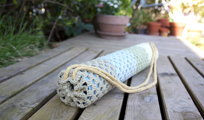 ¿Os animáis con esta bolsa de ganchillo para la alfombra de yoga? El patrón es de Pickles.