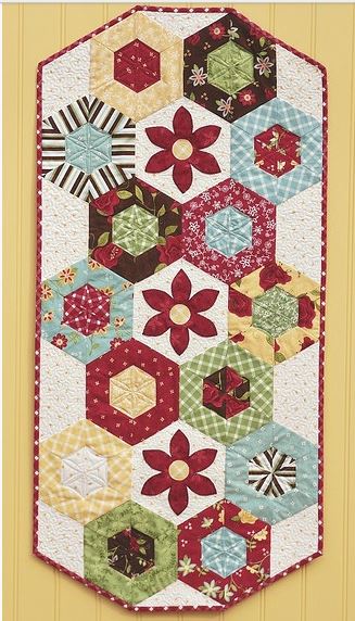 Patchwork table runners with appliqués.