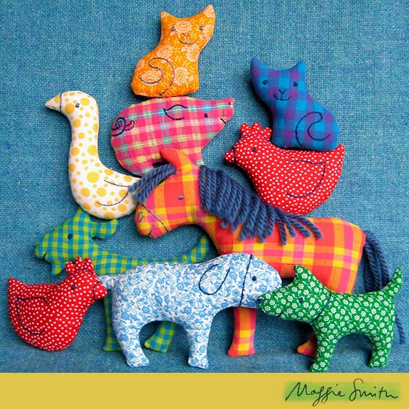 Muñecos de trapo estilo años 70 de Maggie Smith. Podéis comprar los patrones en Kitschy Digitals.