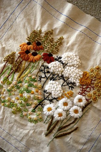Maravilloso bordado crewell de Mellow Stuff.