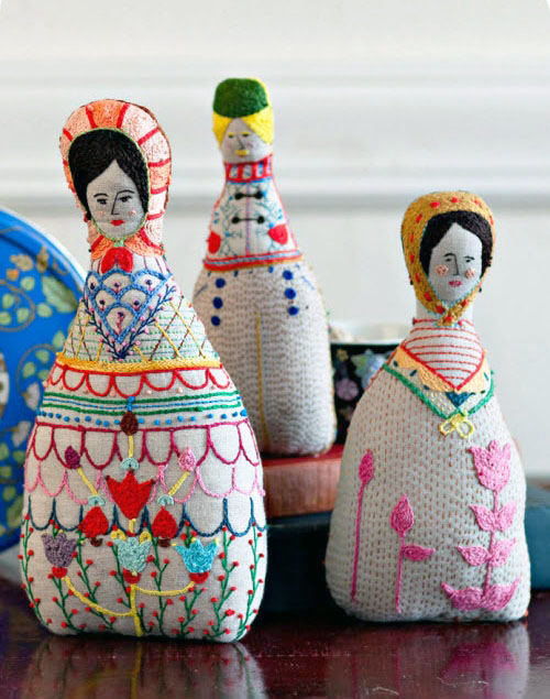 Preciosas muñecas bordadas de Henrietta & Ida.