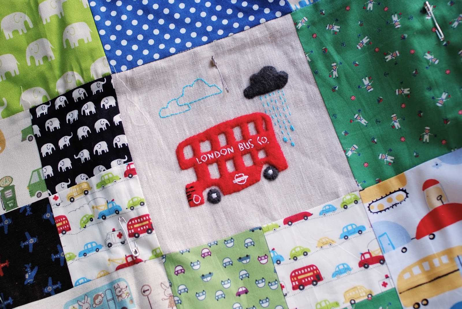 Un quilt infantil con aplicaciones de fieltro, ¡precioso! Es de Rebecca Labou.