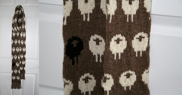 Metalheavy Knits gives us the tutorial and the pattern of this Jacquard sheep scarf.