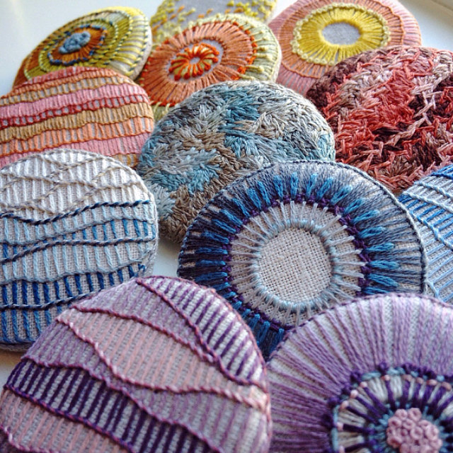 New embroidered broochs by Cathie Jo.