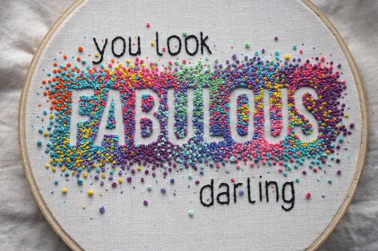 Original lettering bordado a punto de nudo francés de Robin Amy Darling.