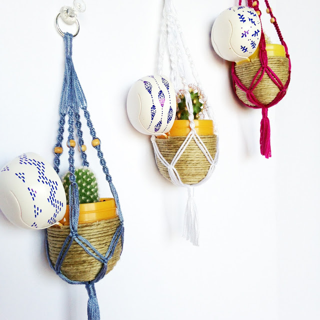 Diminutas creaciones de macramé con hilo mouliné de Damastudi.
