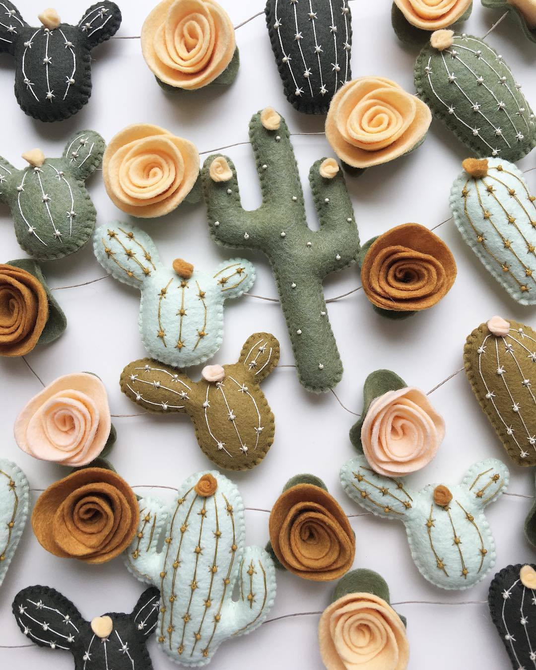 Preciosa guirnalda de cactus de fieltro bordados de Christen Glenn.