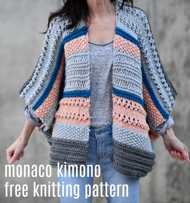 Knit kimono free pattern by Jessica, from Mama In A Stitch.