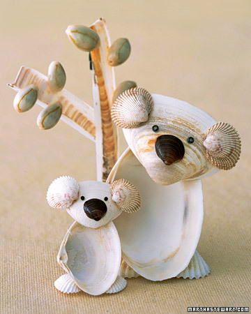 A children craft very appropiate for the beach: koalas made with shells. Though you can leave imagination fly and to create other figures. You can find the tutorial at Martha Stewart’s web page.