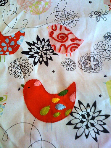 FeelingStitchy propose this month their followers to embroider on printed fabrics. You can see the result at their Flickr group. This is a sample.