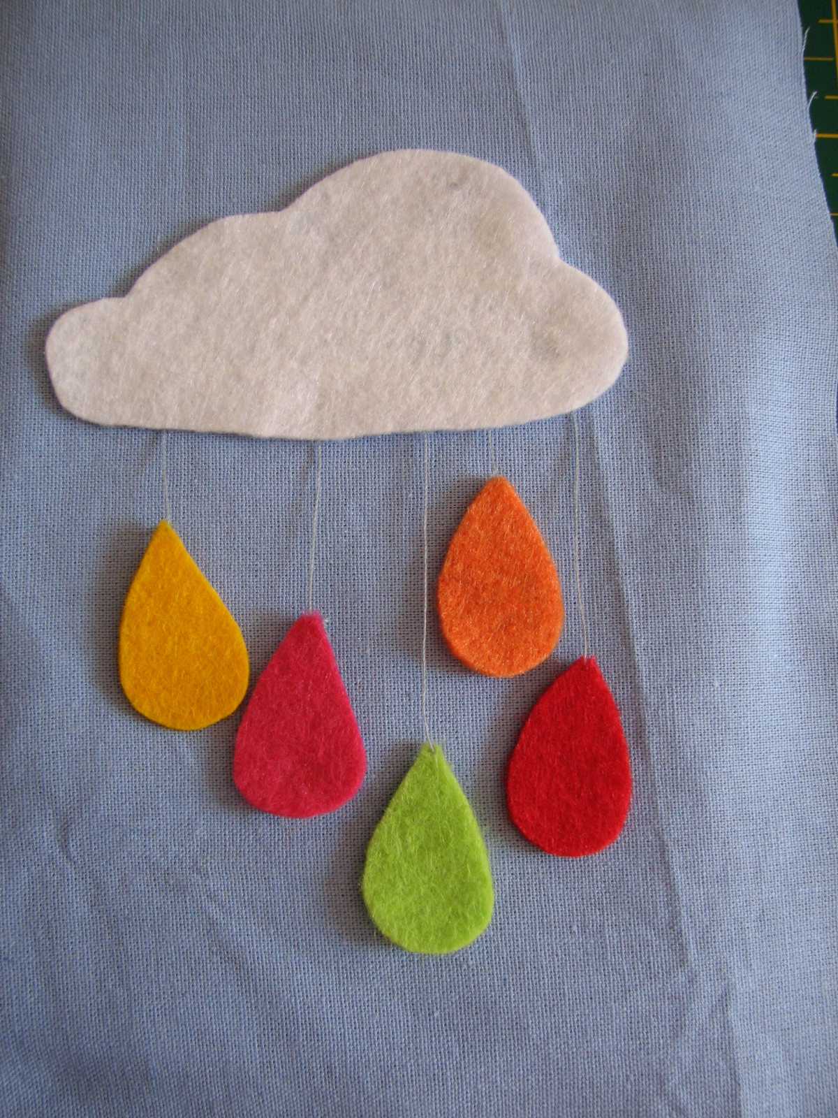 2- Draw the cloud and the raindrops on the felt (two of every color). You can download my templates in PDF here.