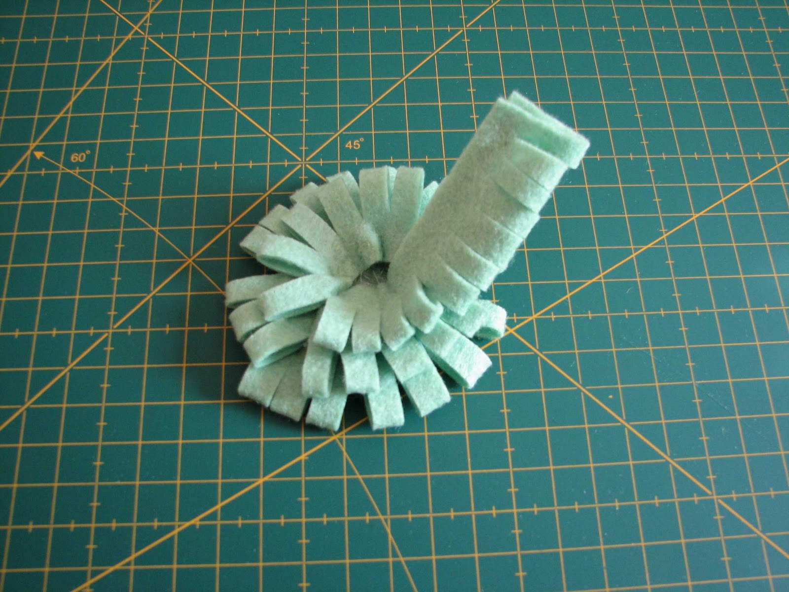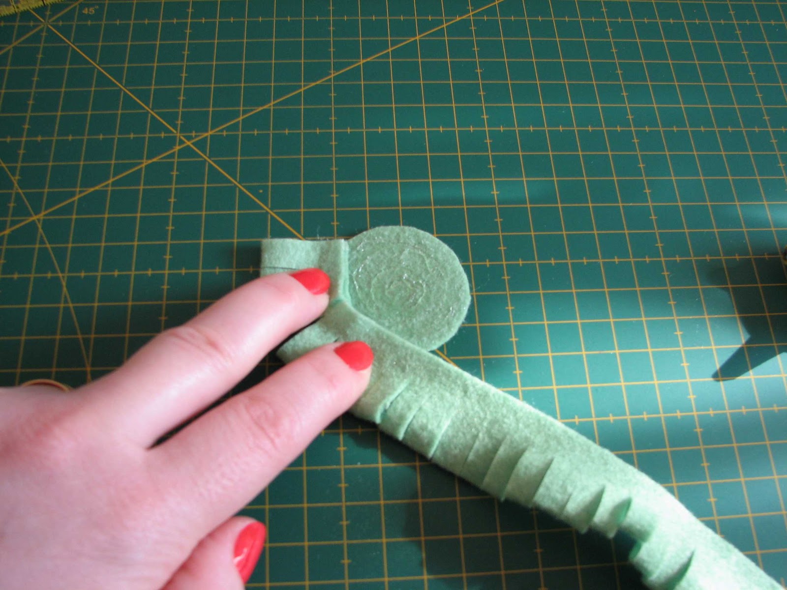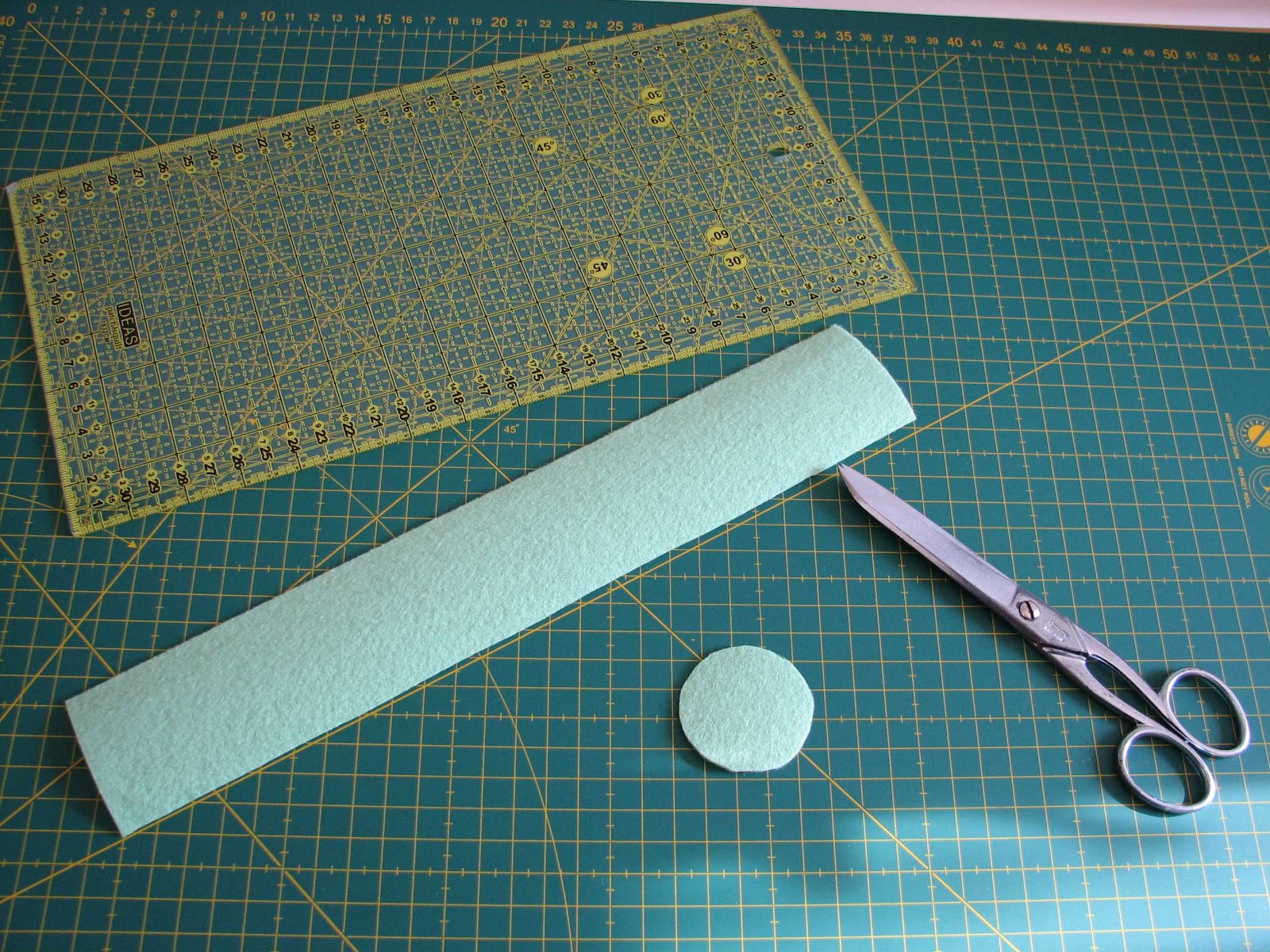 1- Cut a strip of felt, 12 “ long and 2” wide and a 2” diameter circle.