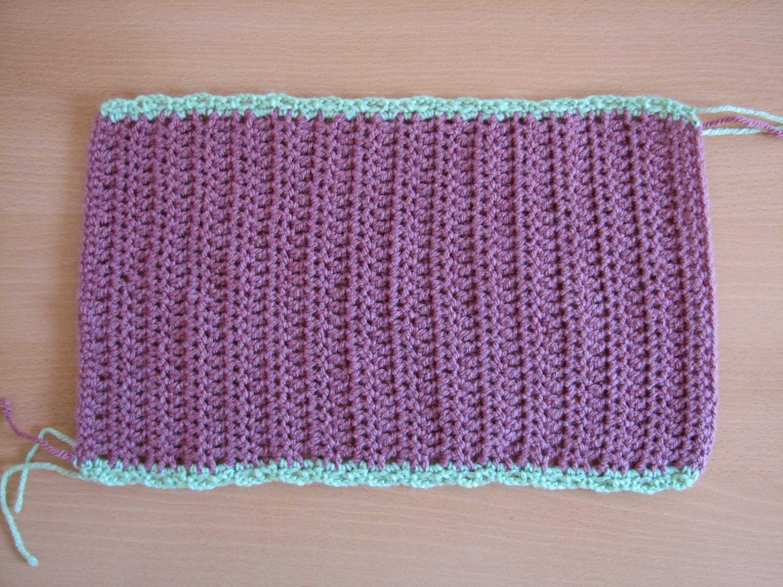 Mi guarda agujas es de 30 cm. por 18 cm. Podéis hacerlo de la medida que queráis, sólo tenéis que aumentar o disminuir los puntos y las vueltas. Yo he empleado una aguja del 4.