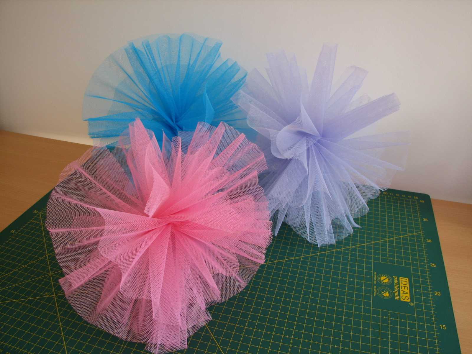Mi hija me pidió unos pompones para decorar su habitación al ver unos que yo había puesto en el blog. Eran pompones de papel, pero yo quería hacerlos con tul. Aún así el tul que tengo es muy rígido, por lo que después de pensarlo mucho los he hecho basándome en parte en la técnica de los pompones de papel. Os cuento.