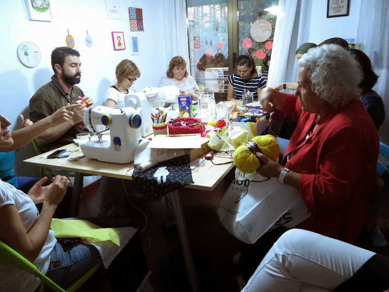There are several groups which usually get together to make crafts, mainly knit and crochet, and to carry out urban actions: Valencia Knits, Urban KnittingValencia and Mujeres y Punto.
